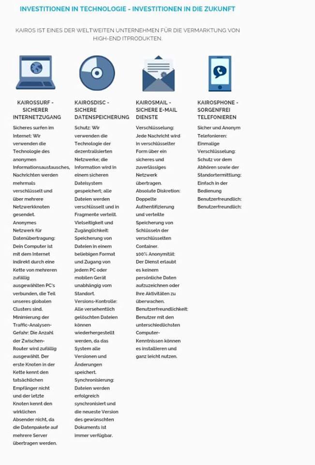 Die Firma Kairos bietet nicht nur die Möglichkeit eines überdurchschnittlichen Verdienstes, sondern legt seinen Mitgliedern auch noch abhängig vom Paket sicherheitsbasierte IT-Lösungen in die Hand. Diese bieten auch dem Kairos-Nutzer den perfekten Schutz vor Angriffen auf seine Daten.